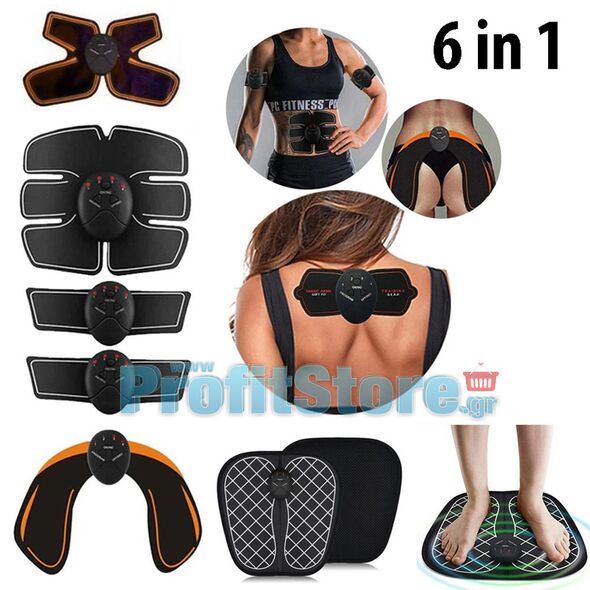 Σετ 6 σε 1 Μηχάνημα Εκγύμνασης - Παθητική Γυμναστική για Κοιλιακούς, Γλουτούς, Χέρια και Αυχένα & Μασάζ Ποδιών - Smart Fitness Series EMS