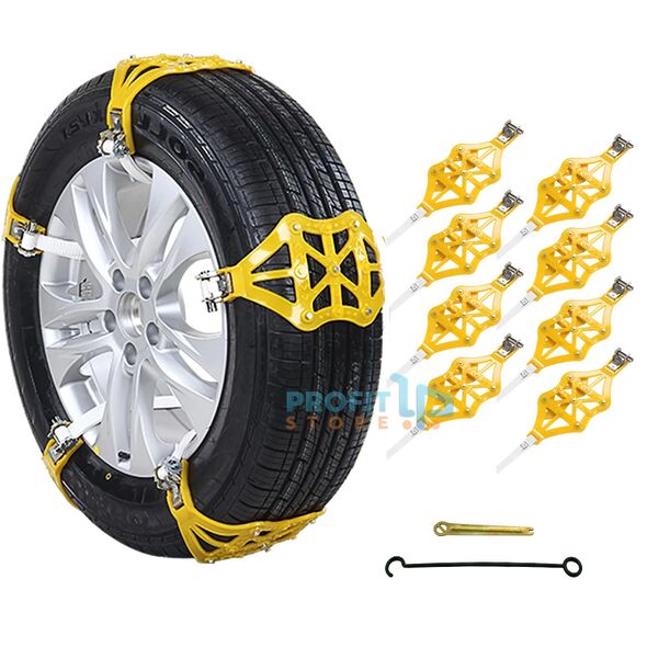 Σετ 8 Πλαστικές Universal Αντιολισθητικές Αλυσίδες με 5 Μεταλλικά Σημεία Επαφής & Καστάνια Σύσφιξης 165mm-275mm - Χιονιού - Δρόμου - Λάσπης για κάθε Αυτοκίνητο Κίτρινες