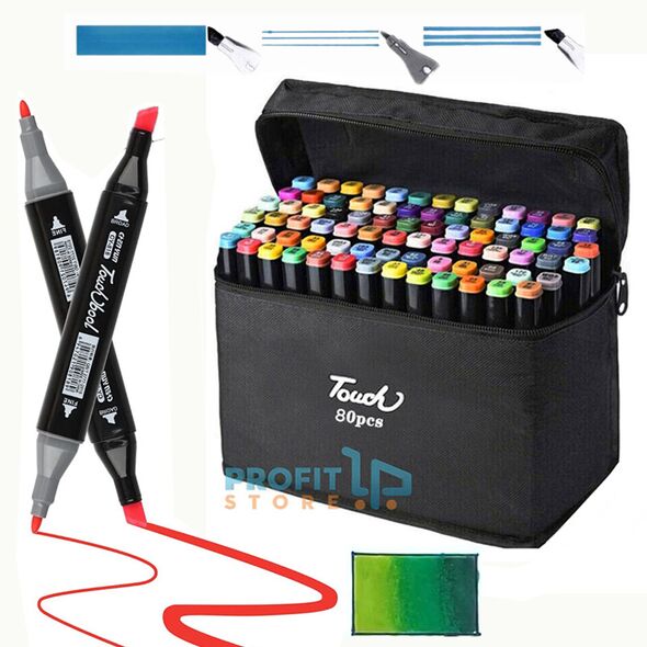 Σετ 80 Επαγγελματικοί Μαρκαδόροι Ζωγραφικής με Διπλή Μύτη - Βασικά & Παστέλ Χρώματα - Broad & Fine - Με Τσαντάκι Μεταφοράς