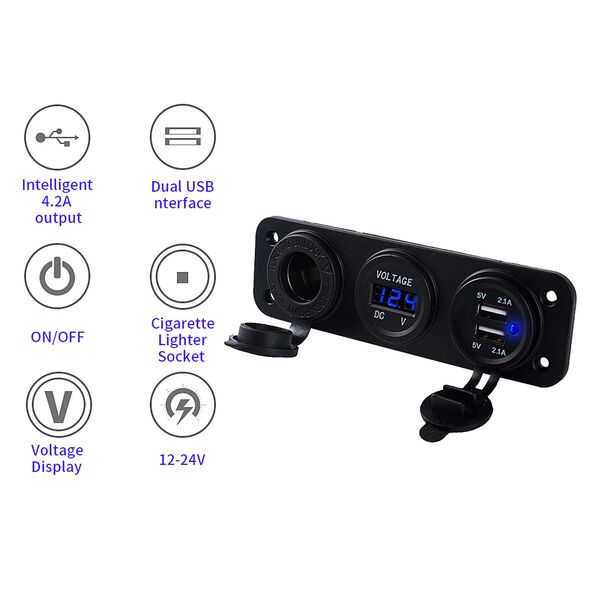 Καινοτόμο πάνελ που ενσωματώνει υποδοχή πρίζας αναπτήρα αυτοκινήτου, φωτιζόμενο ψηφιακό βολτόμετρο και όργανο φόρτισης με δύο θύρες USB!