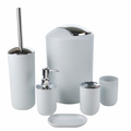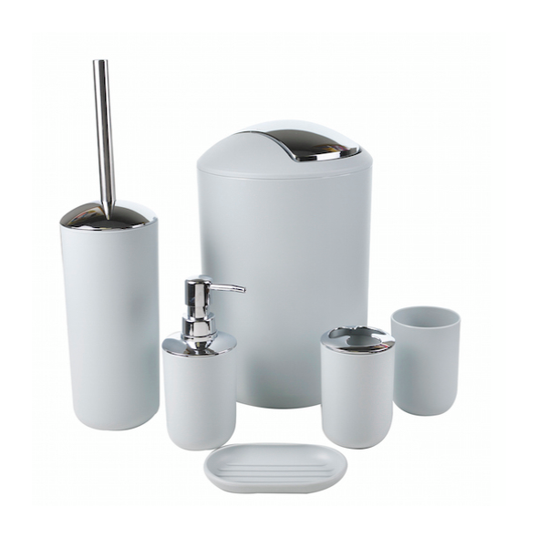 Ανθεκτικό σετ με αξεσουάρ από πλαστικό, για την καλύτερη οργάνωση και εμφάνιση του μπάνιου σας. Το σετ περιλαμβάνει 6 τεμάχια και αποτελείται από τα ακόλουθα είδη: