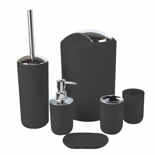 Ανθεκτικό σετ με αξεσουάρ από πλαστικό, για την καλύτερη οργάνωση και εμφάνιση του μπάνιου σας. Το σετ περιλαμβάνει 6 τεμάχια και αποτελείται από τα ακόλουθα είδη: