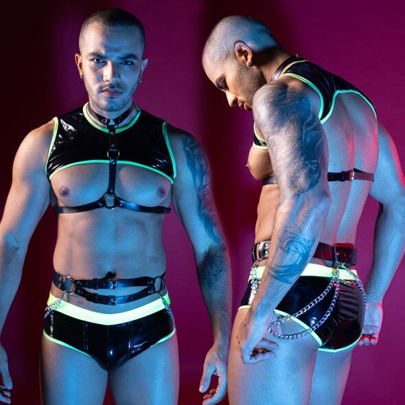 Σετ Ανδρικά Αισθησιακά Εσώρουχα -Φωσφοριζέ Λάτεξ με Λεπτομέρειες Δερματίνης