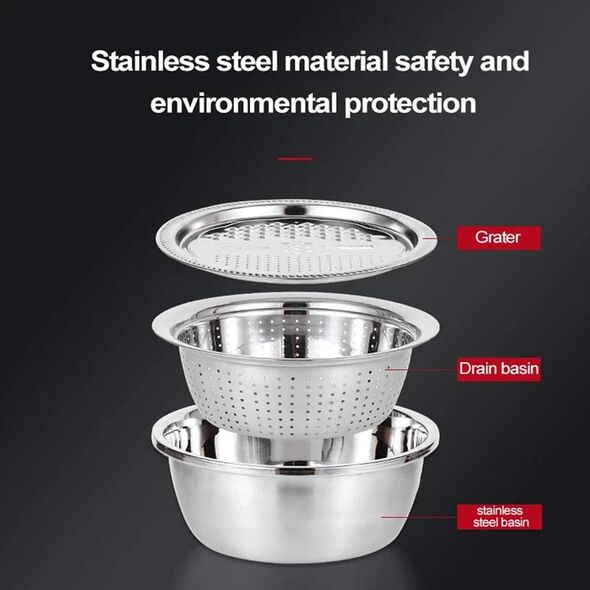 Σετ Ανοξείδωτο Μπολ/Σουρωτήρι/Τρίφτης 3 σε 1 - Stainless Steel Multifunctional Basin