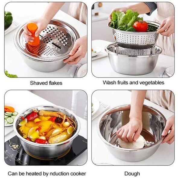 Σετ Ανοξείδωτο Μπολ/Σουρωτήρι/Τρίφτης 3 σε 1 - Stainless Steel Multifunctional Basin