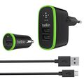 Σετ Αντάπτορα Φορτιστή Belkin για Πρίζα & Αναπτήρα Αυτοκινήτου & Καλώδιο Micro USB