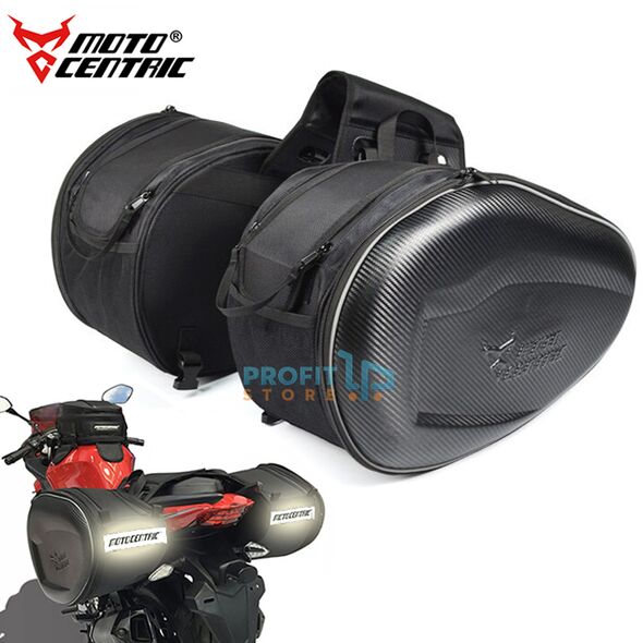 Σετ με 2x Carbon Σκληρές Επεκτεινόμενες με φερμουάρ Πλαϊνές Βαλίτσες - Σαμάρια Motocentric 116L (2x 58L) Μηχανής / Μοτοσυκλέτας με Αδιάβροχο Κάλυμμα & Ανακλαστικές Ταινίες - Τσάντες SaddleBags