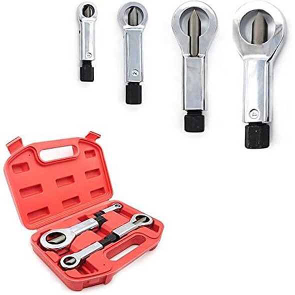 Σετ διαχωριστών-κόφτες παξιμαδιών 4 τεμαχίων, για αφαίρεση σκουριασμένων ή κατεστραμμένων παξιμαδιών 9-27mm. Ανθεκτική κατασκευή, εύκολη χρήση με εξάγωνη βάση για καρυδάκι ή κλειδί. Ιδανικό για αυτοκίνητα, μηχανήματα και σωληνώσεις.