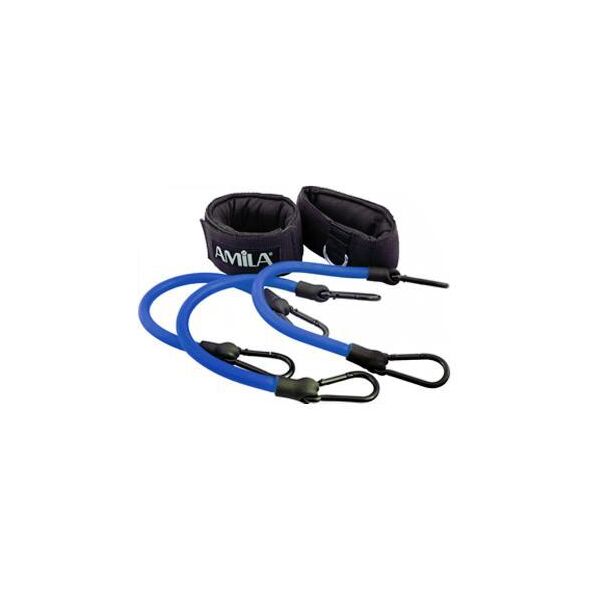 Ένα μοναδικό σετ εκγύμνασης της εταιρίας AMILA που θα γυμνάσει αποτελεσματικά όλους τους μύες των ποδιών! Αποτελείται από τρία ανθεκτικά λάστιχα και δύο δέστρες που προσαρμόζονται ιδανικά στους αστραγάλους και σε κάθε σωματότυπο, χωρίς να τραυματίζουν ή να ερεθίζουν το δέρμα, χάρη στην σπογγώδη επένδυσή τους!