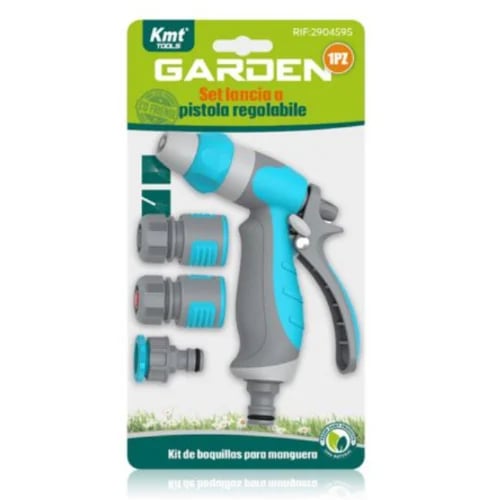 Περιλαμβάνει εργονομικό πιστόλι ποτίσματος με ρυθμιζόμενη ροή νερού και τρία πρακτικά εξαρτήματα για εύκολη σύνδεση με το λάστιχο κήπου.
