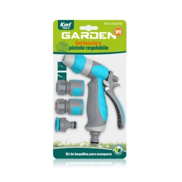 Περιλαμβάνει εργονομικό πιστόλι ποτίσματος με ρυθμιζόμενη ροή νερού και τρία πρακτικά εξαρτήματα για εύκολη σύνδεση με το λάστιχο κήπου.