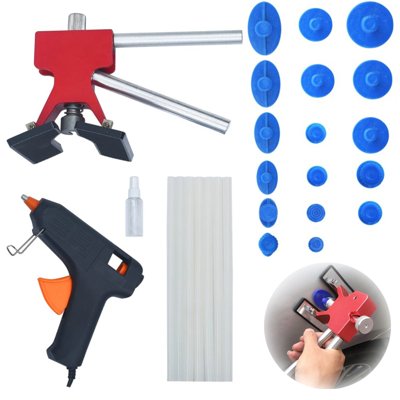 Σετ Επισκευής Βαθουλωμάτων 24 τεμ., με Μεταλλικό Ρυθμιζόμενο Εξολκέα, Πιστόλι Σιλικόνης, Βεντούζες, DIY Κιτ Επιδιόρθωσης Χωρίς Βαφή, 210564
