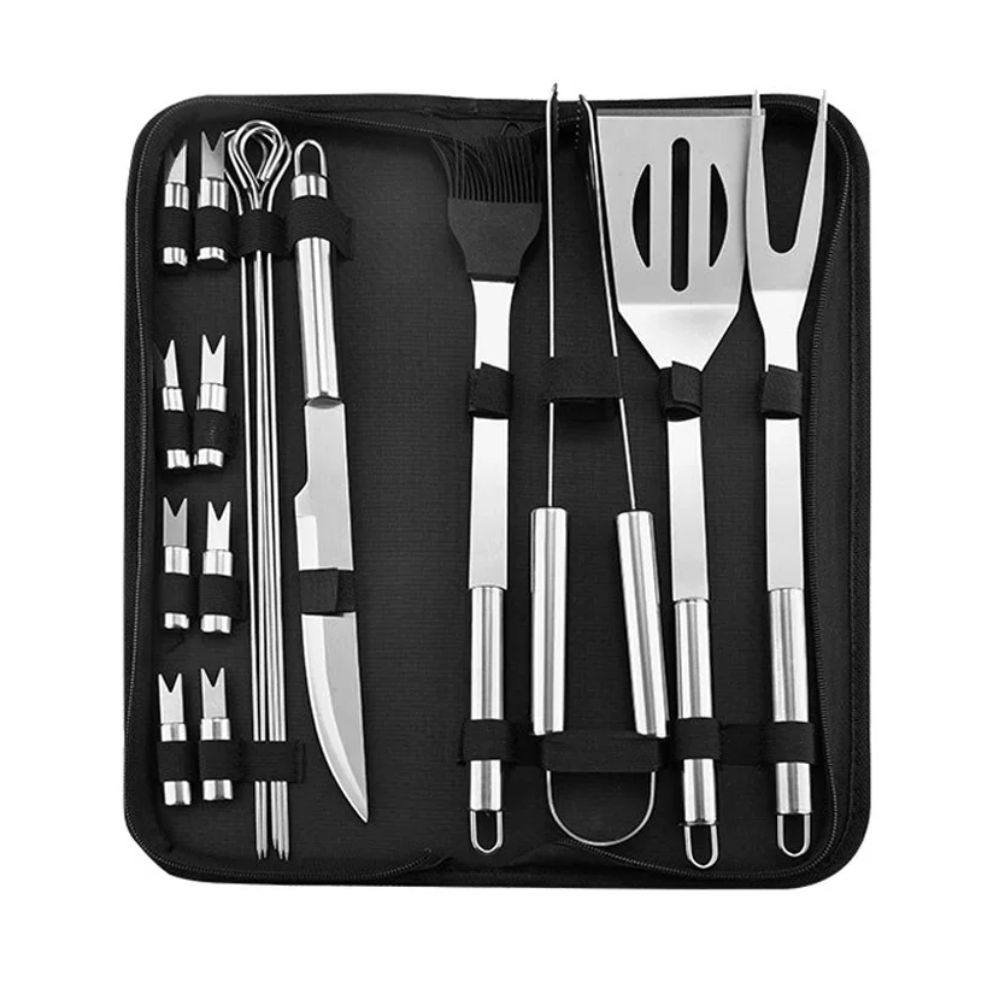 Σετ Εργαλείων BBQ 18 τμχ από Ανοξείδωτο Ατσάλι σε Υφασμάτινη Θήκη Μεταφοράς