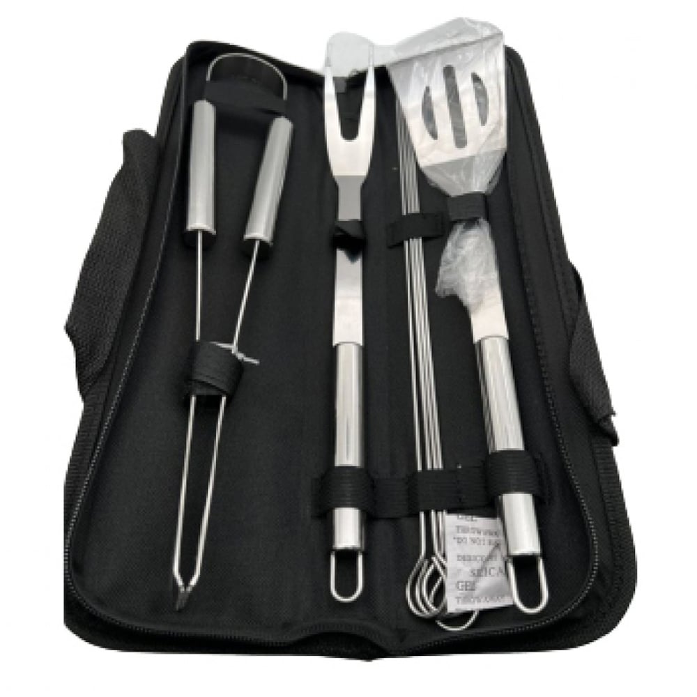 Καινοτόμο σετ εργαλείων από ανοξείδωτο ατσάλι, ιδανικά για χρήση ενώ ψήνετε σε BBQ! Τα εργαλεία συνοδεύονται από κομψή θήκη μεταφοράς και αποθήκευσης έτσι ώστε να μπορείτε να τα παίρνετε εύκολα παντού μαζί και να μην πιάνουν χώρο.