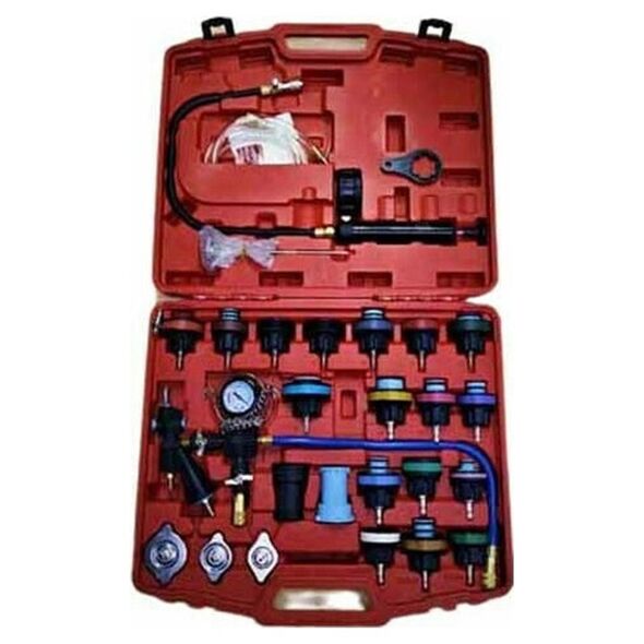 Το Σετ Εργαλείων Ελέγχου Διαρροής Ψυγείου 28τμχ είναι μια ολοκληρωμένη λύση για τον εντοπισμό διαρροών στο σύστημα ψύξης όλων των υδρόψυκτων κινητήρων.