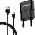 Σετ Φορτιστή Καλώδιο Φόρτισης AWEI C-13M Micro USB 2.1A 1.2m Micro USB Μαύρο.