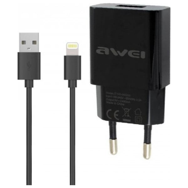 Σετ Φορτιστής - Καλώδιο Φόρτισης AWEI - Lightning 2.1A 1.2m