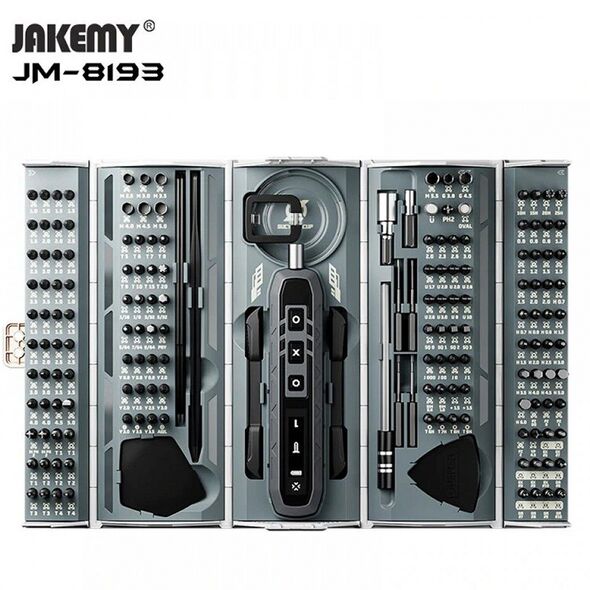 Το βαλιτσάκι της Jakemy περιλαμβάνει 180 διαφορετικά κομμάτια, και έχει όλα όσα θα θέλατε για να κάνετε τη ζωή σας πιο εύκολη στη μάχη με τις μικρές συσκευές που θέλουν επισκευή.