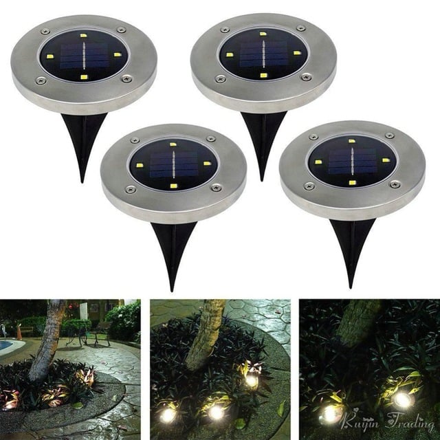 Σετ Ηλιακό Καρφωτό - Χωνευτό Φωτιστικό Led Κήπου με Αισθητήρα Φωτός - 4 Τεμάχια