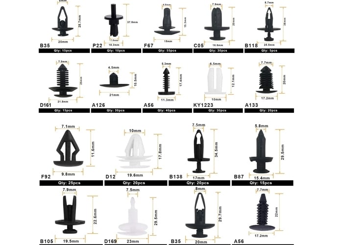 Σας φέραμε την κασετίνα με διάφορα πλαστικά κλιπς - συνδετηρες για αυτοκίνητα Ford, Nissan, Hyundai, BMW, Honda κα σε 18 διαφορετικούς τύπους.