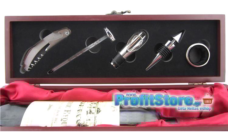 Σετ Κρασιού σε Πολυτελή Ξύλινη Θήκη με 5 Αξεσουάρ Εργαλεία