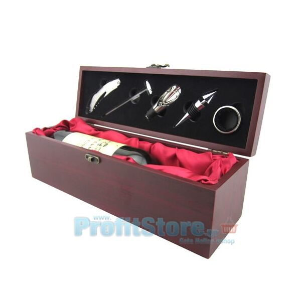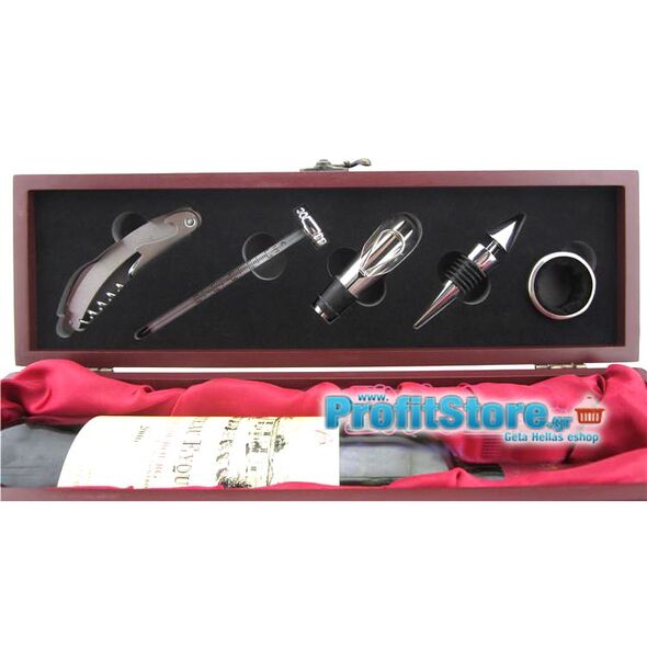 Σετ Κρασιού σε Πολυτελή Ξύλινη Θήκη με 5 Αξεσουάρ Εργαλεία