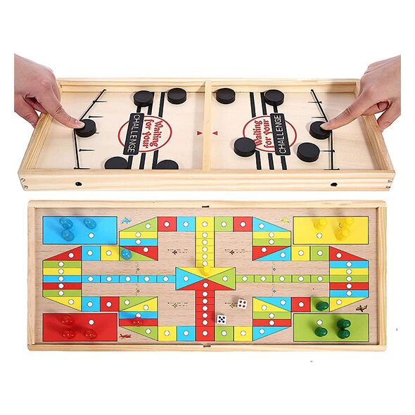 Το επιτραπέζιο αυτό είναι 2 σε 1 καθώς η σανίδα έχει 2 όψεις, η μία πλευρά έχει το παιχνίδι Sling Shot Puck και η άλλη πλευρά έχει το παιχνίδι Ludo.