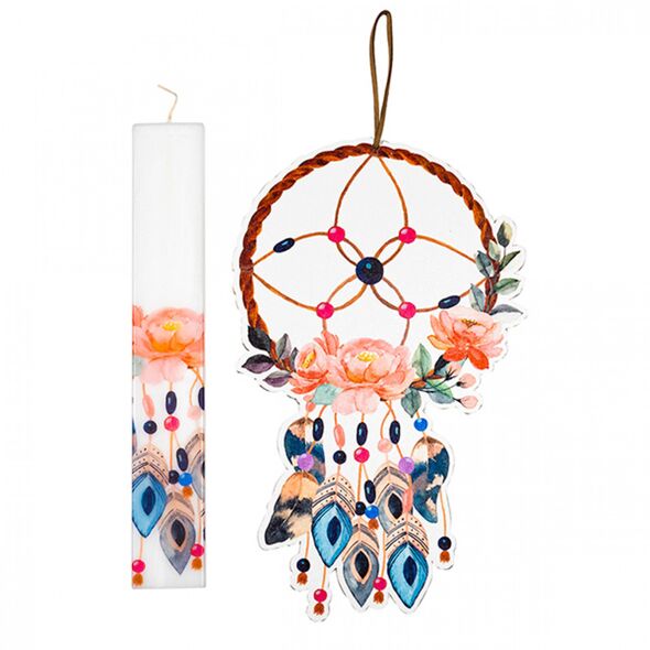 Σετ Λαμπάδα με Εκτύπωση Ονειροπαγίδα σε Κερί Πλακέ 4,5x29,5cm & Αναμνηστικό Ξύλινο Καδράκι 19x31cm