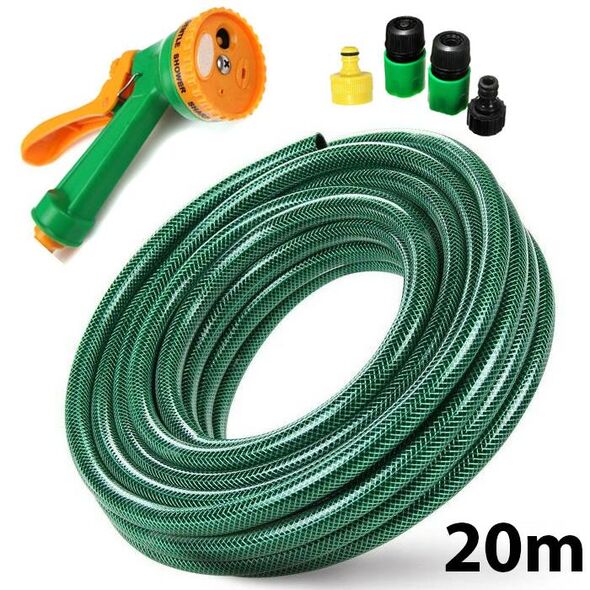 Ελαφρύ, Εύκαμπτο, Ελαστικό Λάστιχο - Σωλήνας ποτίσματος κήπου με Πιστολάκι & Ρακόρ Μήκους 20m. Απαραίτητος εξοπλισμός για τον κήπο, το εξοχικό, και όχι μόνο.