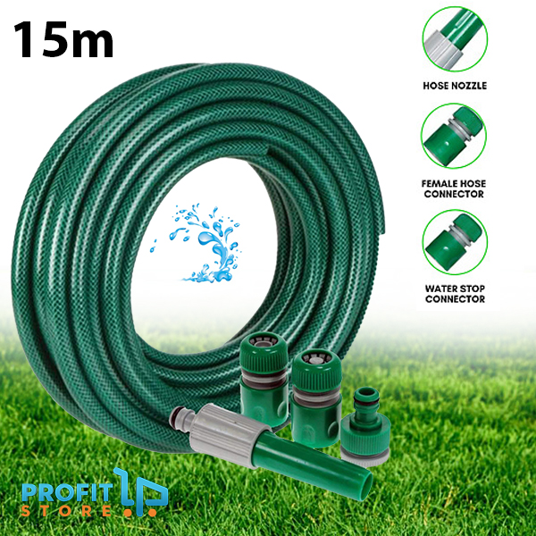 Σετ με Λάστιχο ποτίσματος κήπου - βεράντας 15m εύχρηστο, ανθεκτικό σε πολύ μεγάλες πιέσεις. Διαθέτει πιστολάκι - ψεκαστήρα και ταχυσυνδέσμους.