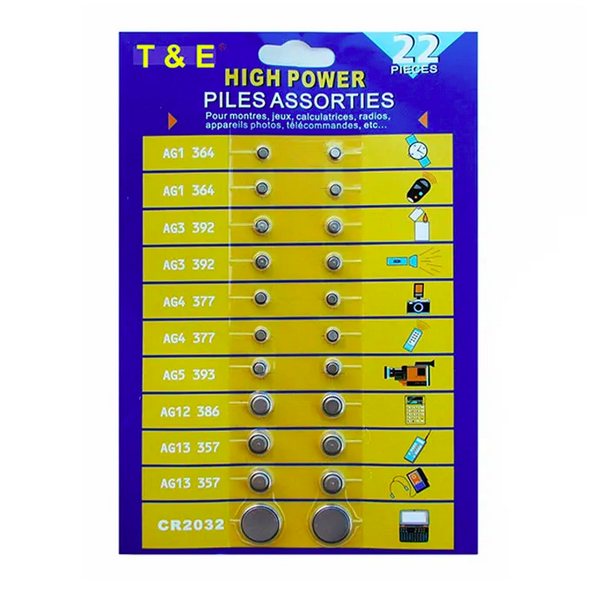 Ένα απαραίτητο σετ με 22 τεμάχια μπαταρίες λιθίου ρολογιών.