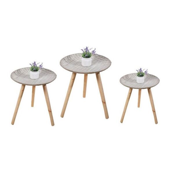 Ένα υπέροχο σετ που αποτελείται από 3 τραπεζάκια με ανάγλυφη επιφάνεια, διαφορετικών μεγεθών, κατάλληλα να ταιριάξουν σε οποιαδήποτε διακόσμηση και σε κάθε χώρο του σπιτιού σας.