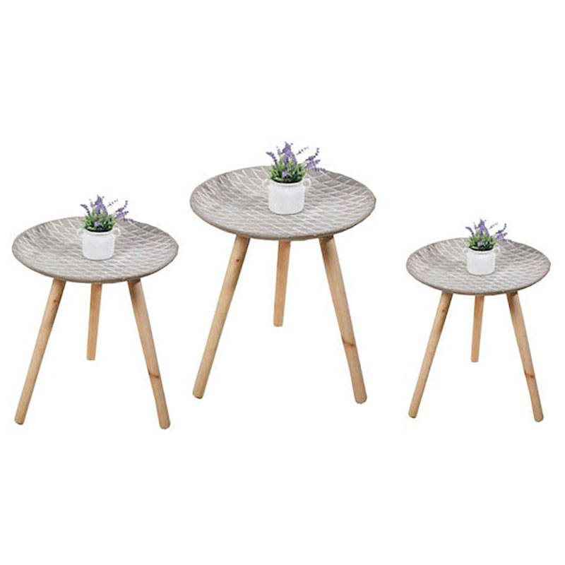Σετ Μοντέρνα Ξύλινα Τραπεζάκια με Ανάγλυφη Επιφάνεια 3 τεμαχίων σε 3 μεγέθη