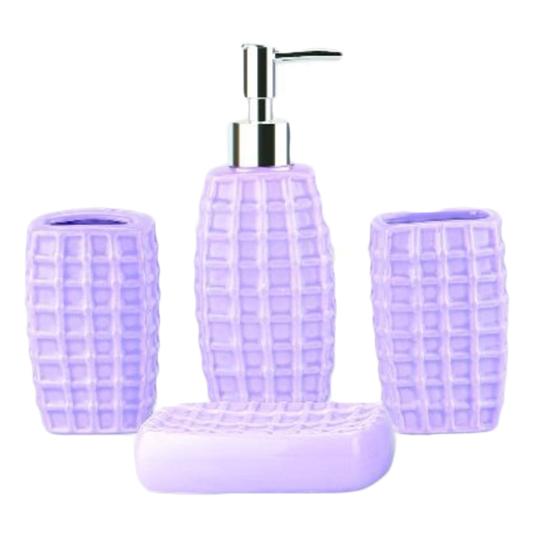 Σετ Μπάνιου 4 Τεμαχίων Μωβ με Τετράγωνο Μοτίβο