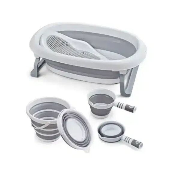 Αυτό το σετ περιλαμβάνει μια πτυσσόμενη μπανιέρα, σχεδιασμένη για εύκολη αποθήκευση και μεταφορά, ιδανική για μικρούς χώρους ή ταξίδια.