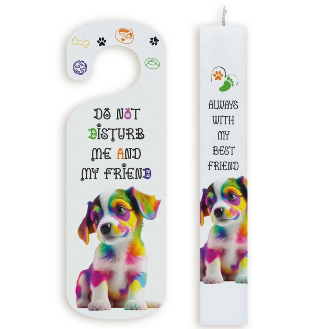 Σετ Πασχαλινή Λαμπάδα με Σκυλάκι & Καδράκι Πόρτας “Do Not Disturb Me And My Friend”