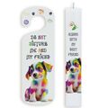 Το σετ ξεχωρίζει για το χαρούμενο, πολύχρωμο σκυλάκι και το παιχνιδιάρικο μήνυμα “Do Not Disturb Me And My Friend”.
