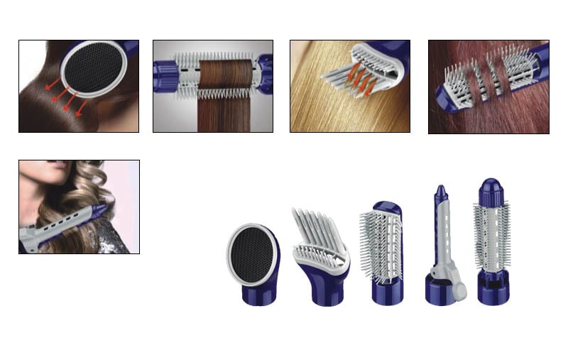 - Ένα πλήρες σετ που θα φέρει το σαλόνι ομορφιάς στο σπίτι σας! Με 5 διαφορετικά εξαρτήματα θα κάνετε το χτένισμα που επιθυμείτε ανάλογα με τη διάθεση σας κάθε φορά! Ίσια, με μπούκλες, ανάλαφρα... η επιλογή είναι στο χέρι σας!
