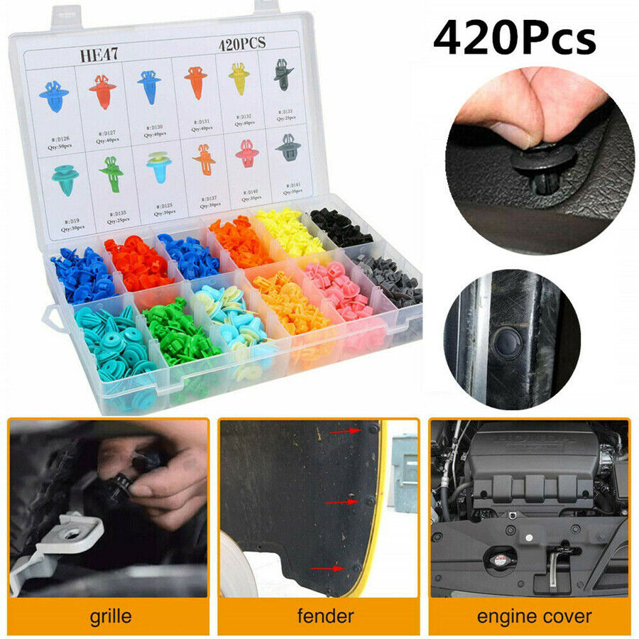 Σετ πολύχρωμα Κλιπ - Κασετίνα 420τμχ για Εσωτερικό, Ταπετσαρία, Μοκέτες Αυτοκινήτου & Προφυλακτήρες Universal. Σας φέραμε την κασετίνα με διάφορα πλαστικά κλιπς - συνδετηρες για όλα σχεδόν τα αυτοκίνητα.