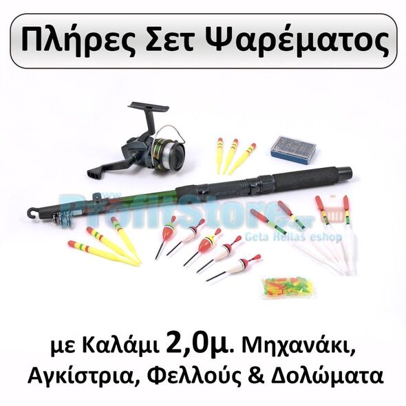 Σετ Ψαρέματος με Τηλεσκοπικό Καλάμι 2μ, Μηχανάκι, Αγκίστρια και Φελλούς - Fishing Set For Beginners