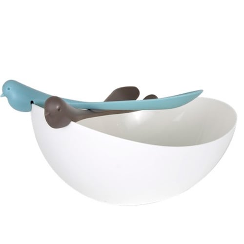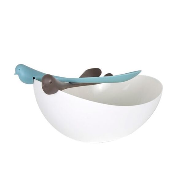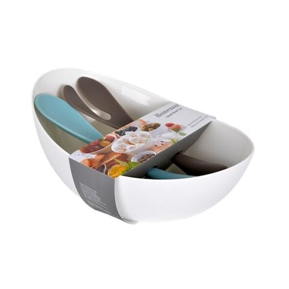 - Χρώμα: Λευκή σαλατιέρα, καφέ και μπλέ κουτάλες