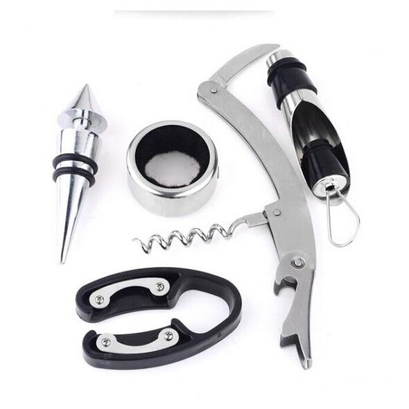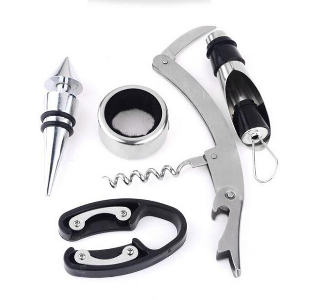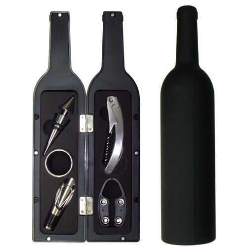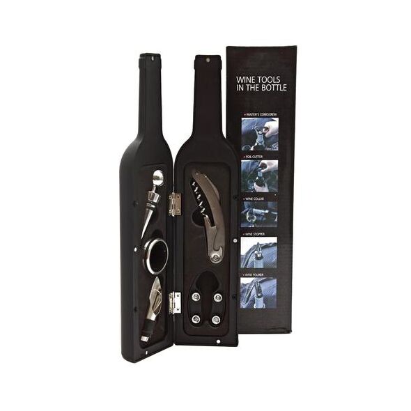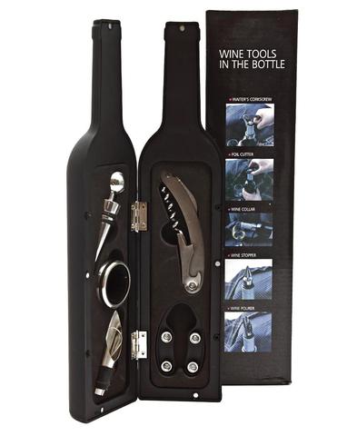 Σετ Σερβιρίσματος Κρασιού σε Θήκη Μπουκάλι με Τιρμπουσόν, Κόφτη Ταινίας, Στόμιο Ροής, Πώμα Διακοπής, Δαχτυλίδι Σερβιρίσματος - Wine Tools in a Bottle