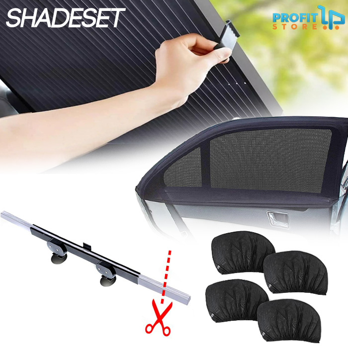 Σετ Σκιάς Αυτοκινήτου SHADESET Συρόμενο Σκίαστρο Παρμπρίζ & 4x Πλευρικά Κουρτινάκια - Σκίαστρα Διάτρητα Παραθύρων Ηλιοπροστασία