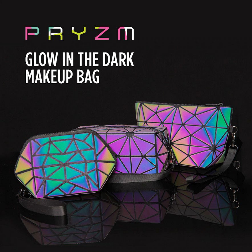 Σετ Τρεις Τσάντες για Μακιγιάζ με Γεωμετρικά Σχέδια που Φωσφορίζουν - Full Set Pryzm Makeup Bags