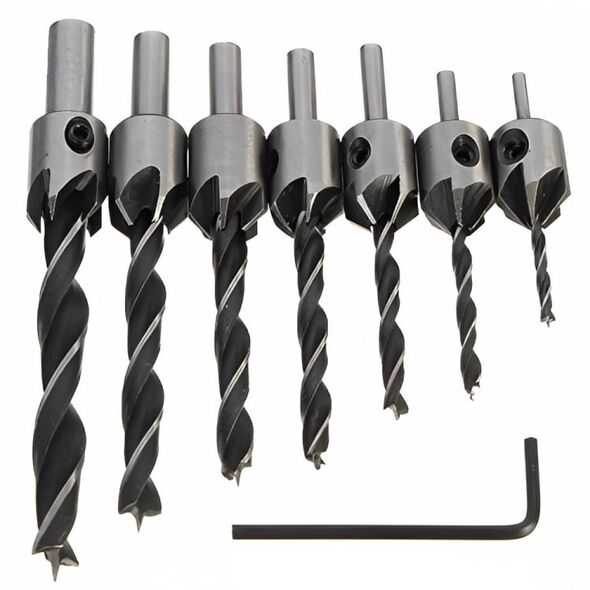 Σετ Τρυπάνια με Κυλινδρικό Στέλεχος και Φρέζα για Διάτρηση Ξύλου - 7 Τεμάχια & Allen