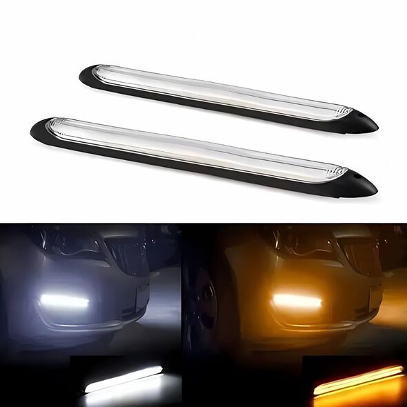 Αναβαθμίστε άμεσα την εμφάνιση και την ορατότητα του οχήματός σας με το σετ Universal LED φώτων ημέρας και διαδοχικών φλας, μήκους 16 cm.