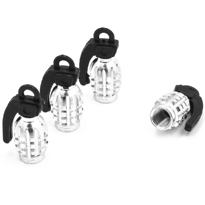 Σετ Βαλβίδες Πίεσης Ελαστικών σε Σχήμα Χειροβομβίδας 4τμχ. - Ασημί