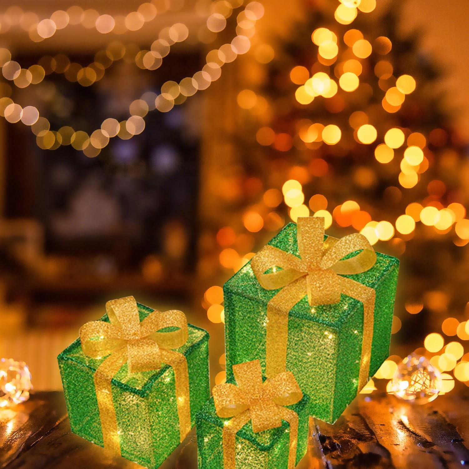 ✔️ Χάρη στον ενσωματωμένο LED φωτισμό, τα κουτιά αποκτούν ζεστή και λαμπερή εμφάνιση, ιδανική για το σαλόνι, την είσοδο ή δίπλα στο χριστουγεννιάτικο δέντρο.