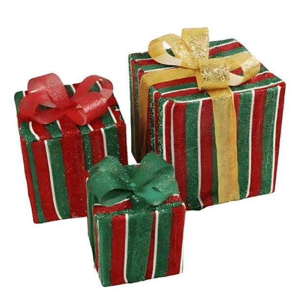 Σετ Χριστουγεννιάτικα Διακοσμητικά Φωτιζόμενα Κουτιά Δώρου Ριγέ 25.5, 20.5 & 15.5cm