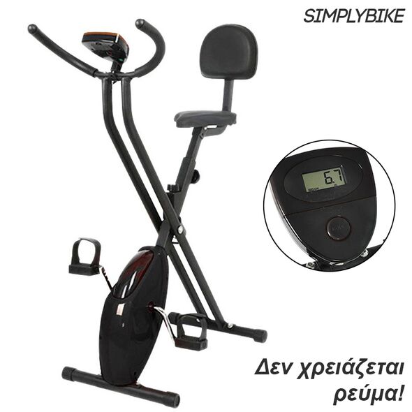 SimplyBike Αναδιπλούμενο Σπαστό Στατικό Ποδήλατο Γυμναστικής Μηχανικό Λειτουργεί Χωρίς Ρεύμα με Κάθισμα, Ρυθμιζόμενη Αντίσταση & Οθόνη LCD Ενδείξεων